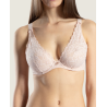 Adapté aux bonnets profonds, le Triangle Plunge Confort ose confort et féminité. Tout en broderies rappelant la rose d’Ispahan, il orne la poitrine de galons de dentelles délicats que l’on retrouve sur le dos du modèle. L’aisance et la féminité se marient grâce au petit bijou doré agrémenté d’un strass Swarovski à l’entre-sein.