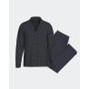Pyjama long en maille cardée, avec chemise boutonnée et imprimé discret à micro-motifs. Le pantalon uni comprend des poches latérales. Fabriqué en 100% Coton pour un maximum de confort. Fabriqué au Portugal.