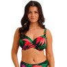 Offrez-vous une escapade tropicale avec le Haut de Bikini Bonnet Entier Pichola en Mangrove, où des feuilles de palmier éclatantes dans des tons corail et fuchsia se déploient sur un fond vert profond, évoquant la richesse des paysages exotiques. Ses bonnets plissés et emboîtants subliment toutes les formes de poitrine, tandis que ses renforts latéraux invisibles assurent un excellent maintien et projettent délicatement la poitrine vers l'avant.