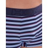 Ce boxer homme en microfibre douce associe maintien et souplesse. Son motif à rayures bleu et rouge évoque l’univers marin avec élégance. Grâce à son élastique de soutien et son voile élastique en bas de jambe, il assure un confort impeccable tout au long de la journée.