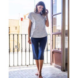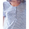 Nuisette imprimée dans des tons de bleu sur fond denim. Confectionnée 50% coton, 50% modal, cette nuisette offre un confort exceptionnel et une douceur incomparable. Elle est dotée d'une patte de boutonnage sur le devant, alliant praticité et style. Ses manches courtes lui confèrent une allure fraîche et décontractée. Idéale pour se détendre à la maison le soir, elle combine style et confort.