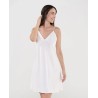 Nuisette courte pour femme en tissu uni ivoire doux à pois satinés, avec un décolleté en V et de fines bretelles.