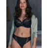 Portia en Black est très élégant dans son noir intemporel. Paré de superbes broderies noires de conception autrichienne, notre Soutien-gorge Renfort Latéral est orné de points brodés en fil lurex sur le haut de bonnet et la basque, imitant le scintillement des pierres précieuses exposées à la lumière. Le confort et le maintien sont au cœur de la collection, avec des bretelles réglables pour faciliter l'ajustement, et des bonnets trois pans avec un panneau de soutien latéral pour rehausser et projeter la poitrine vers l'avant.