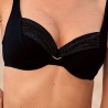 Hermine est un bikini classique avec drapé froncé. Il s'agit d'un choix élégant et féminin pour les femmes qui cherchent un haut de bikini classique et polyvalent. L'anneau décoratif métallique confère à ce haut un look raffiné et luxueux.