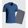 Pyjama 100% Coton composé d'un t-shirt col V, et short à imprimé géométrique et poches arrières. Fabriqué au Portugal.