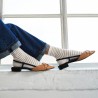 Avec leur teinte écrue et leurs rayures dorées, ces chaussettes pour femmes méritent d'être mises en lumière. Faites scintiller votre look en les portant au-dessus de vos collants ou jambes nues, avec une robe courte ou une jupe pour un look bien affirmé. Un accessoire 100% made in France qui fait toute la différence dans un dressing féminin !