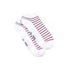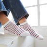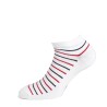 Confectionnée à partir d'un coton blanc lumineux, notre chaussette pour homme arbore de belles rayures bleu marine et rouge. Ce modèle est parfait pour les journées estivales, ou simplement pour ressentir une sensation de légèreté au quotidien. Grâce à leur coupe invisible, elles se font discrètes dans toutes les chaussures basses.
